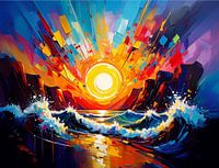 Wanneer de zon de oceaan raakt, begint een dans van de elementen. Te midden van bulderende golven barst het licht in kleuren uit. Het beeld vertelt over elementaire krachten, over de schoonheid van chaos en over de magie van het moment waarop de wereld zichzelf herschept - sprankelend, wild en vol leven.