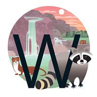 Alles met de W. Zoek zoveel mogelijk woorden met de W. Een wasbeer bij een waterval. Een wezel en een worm. Een wolf, een woud, en weggetje een wagen. En zie je het web en de wolken?Fantaseer erop los en verzin je eigen verhaal.