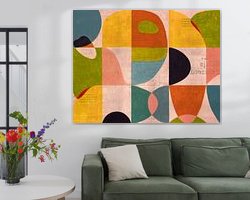 Dit Kleurrijke kunstwerk is een combinatie van een abstract schilderij en een mixed media collage. Samengebracht en tot een modern geheel.