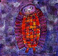Stukje uit een grotere collage uilen. Heel kleurrijk geschilderd met aquarel op papier en bewerkt met acryl stempeldruk. Getekend met oostindische inkt. Het maakt deel uit van een grote serie dieren tekeningen en aquarellen, gebaseerd op tekeningen van mijn kinderen. In veelvoud geprint voor een zeefdrukserie. Heel mooi en decoratief om meerdere werkjes samen te combineren. Geschikt voor de kinderkamer maar ook voor huiskamer, kantoorruimte of praktijkruimte.