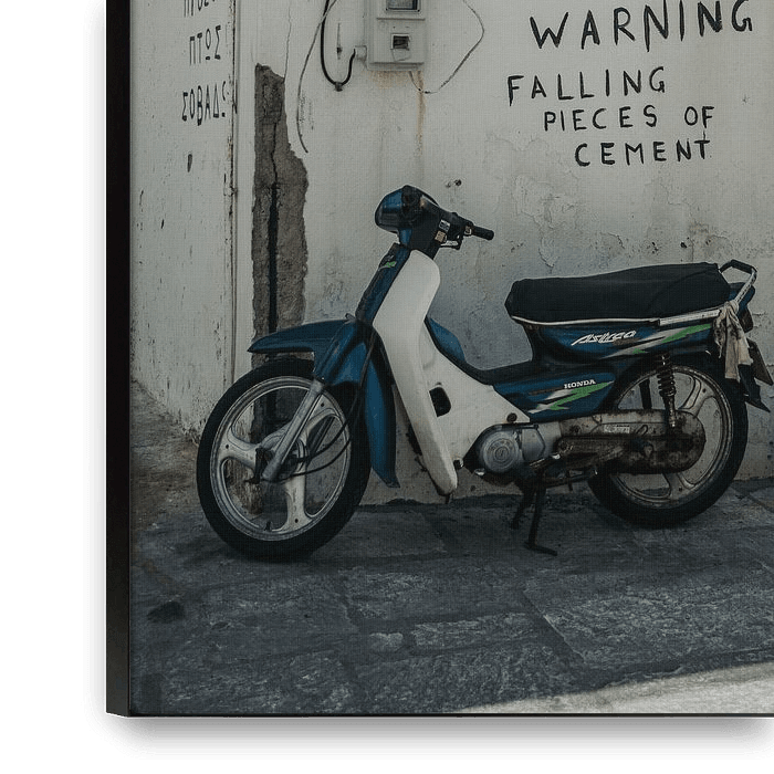 Koop de foto WARNING, FALLING PIECES OF CEMENT. van wiebesietze als print op canvas, aluminium dibond, (ingelijste) fotoprint, behang en ArtFrame. Voor jou op maat geprint in Fine-Art kwaliteit.