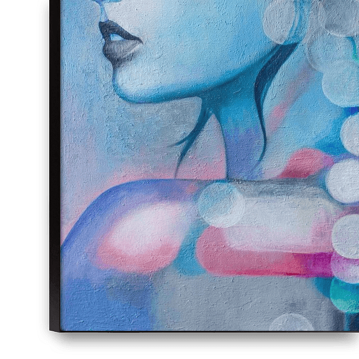 Jouw gekozen kunst op doek, gespannen in een aluminium frame. Snel en eenvoudig te verwisselen voor een frisse uitstraling en helemaal zoals jij het wilt.
