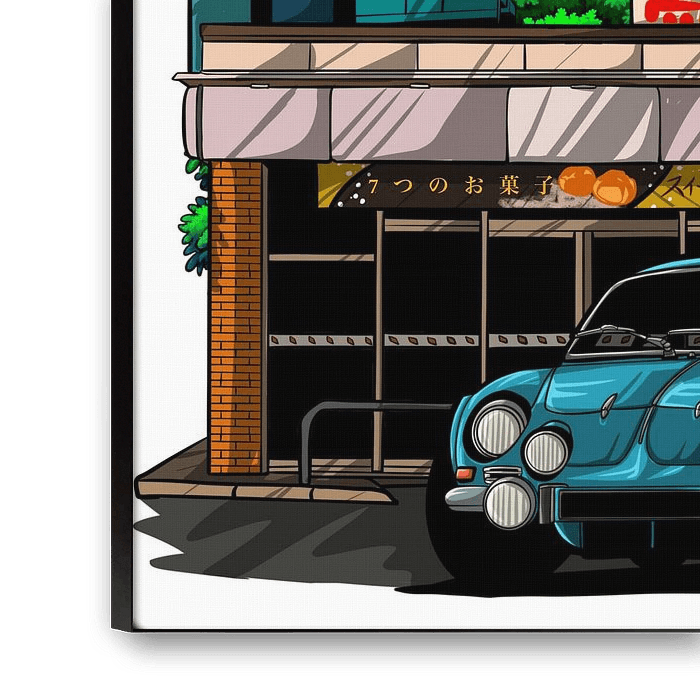 Whispers of Fuji is een digitale illustratie die de tijdloze harmonie van Japan tussen natuur, cultuur en machine viert. Onder de majestueuze berg Fuji staat een oude blauwe sportwagen rustig voor een oude Japanse winkel - een nostalgische herinnering aan het gouden tijdperk van autorijden. Het kunstwerk combineert op anime geïnspireerd lijnwerk, retro kleuren en moderne compositie en creëert zo een filmisch beeld van vrede, vrijheid en snelheid.