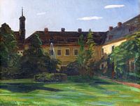 WILHELM TRÜBNER, Binnenplaats in de abdij van Neuburg met fontein, ca.1913 van Atelier Liesjes