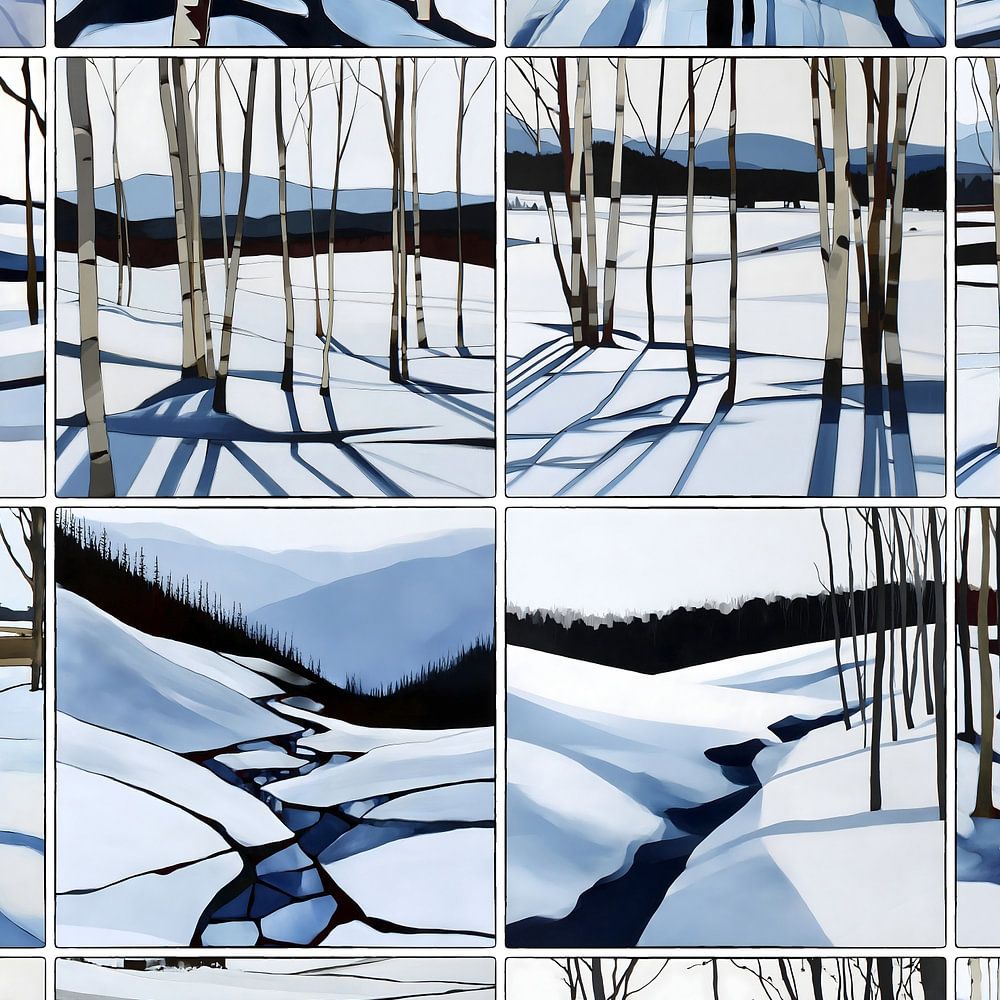 Ervaar de serene schoonheid van de winter in een nieuw jasje in deze boeiende serie hedendaagse landschap schetsen. Elk werk in deze collectie legt op meesterlijke wijze de ingetogen elegantie vast van met sneeuw bedekte bossen en bevroren beekjes, en nodigt de kijker uit in een wereld waar licht en schaduw over het landschap…
