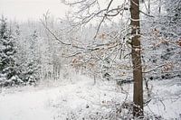 Ik fotografeerde dit sfeervolle winterlandschap met besneeuwde bomen in het bos bij mijn huis in Beieren.