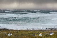 WITTE HUIZEN STAAN VLAK LANGS DE WOESTE ZEE MET STORM IN AANKOMST