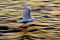 Witte zwaan in vlucht
