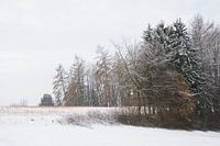 Ik fotografeerde dit sfeervolle winterlandschap met besneeuwde velden en bossen in de buurt van mijn huis in Beieren. Het maakt deel uit van de serie "Rural Winter".