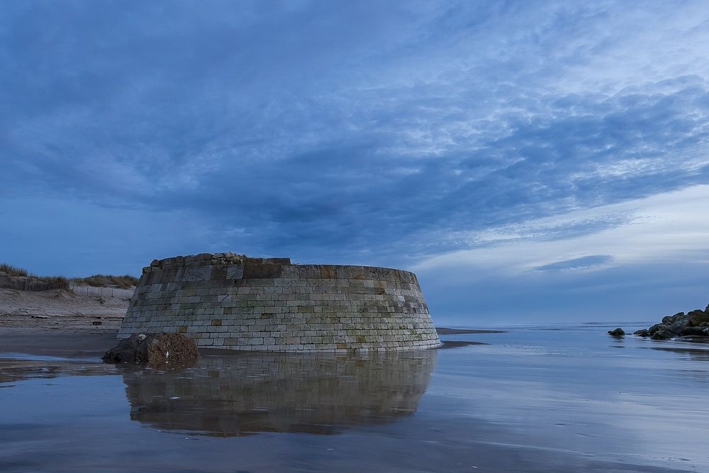 Lange sluitertijd opnamen van de Franse rotskust tijden het blauwe uurtje na zonsondergang! La Rochelle Lighthouse of La Coubre