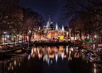 Nachtopname van het waag gebouw Amsterdam is een middeleeuws gebouw op de Nieuwmarkt in het centrum van Amsterdam. Het was oorspronkelijk een stadspoort. De huidige naam verwijst naar de latere functie als waag.
