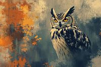 Deze prachtige afbeelding van een uil met intense, gouden ogen is een echte blikvanger voor ieder interieur. Het ontwerp combineert realistische details met abstracte, warme kleurtonen in oranje en blauwgrijs, waardoor het een unieke sfeer creëert. De indringende blik van de uil roept een gevoel van wijsheid en mysterie op, terwijl de achtergrond de aandacht trekt met artistieke penseelstreken. Perfect als opvallend kunstwerk voor de slaapkamer, het kantoor of de woonkamer. Voeg een vleugje natuur en diepgang toe aan je interieur met dit kunstwerk, dat zowel moderne als klassieke stijlen aanvult.
