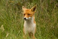 Een waakzame vos in de Amsterdamse Waterleidingduinen