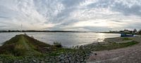 Panoramaoverzicht Waal bij Tiel met afvaart voetveer naar Wamel.