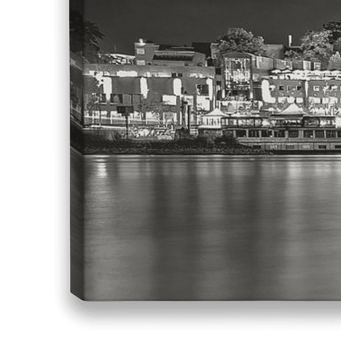 Koop de foto Waalkade Nijmegen by Night - Panorama - Zwart-wit van Nicky Kapel op canvas, aluminium dibond, (ingelijste) fotoprint, behang en ArtFrame, op maat geprint in Fine-Art kwaliteit.