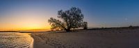 Een panorama foto van een grote Wilg aan het Waalstrand nabij de Bisonbaai in de Gelderse poort. Bijzonder aan het panorama is dat links de zon op komt en rechts de maan onder gaat.