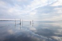 Visnet in het Veerse meer, Vrouwenpolder/Breezand in Zeeland. Ik kwam dit visnet tegen terwijl ik op weg was naar een andere locatie. In dit moment leek het eerder een stille installatie dan een gebruiksvoorwerp. De lijnen spanden zicht strak tussen de palen, gevangen in het licht dat de contouren benadrukt. Geen boot, geen beweging,…