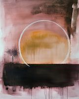 Dit beeld vangt een verstild moment waarin natuur en licht elkaar zacht raken, precies op de grens tussen dag en avond. Centraal staat een witte cirkel, opgebouwd uit meerdere dunne, bijna trillende lijnen. Deze gelaagdheid geeft de vorm een levendig en ademend karakter—alsof de cirkel niet statisch is, maar pulserend aanwezig blijft.…