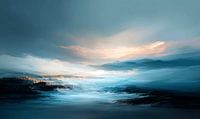De wolken hangen zwaar van poëzie, het licht breekt zacht door alsof het geheimen fluistert aan wie durft te kijken. In de verte een zwerm vogels, een schuimende golf, een verlaten eiland. Elk beeld is als een verstilde symfonie — perfect voor een interieur dat rust, diepgang en verstilling ademt.