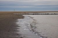 Deze foto toont een verstild moment aan het strand van Ouddorp in Zuid-Holland, vastgelegd tijdens eb wanneer het water zich langzaam terugtrekt richting de Noordzee. Het beeld wordt gekenmerkt door zachte lijnen, subtiele contrasten en een bijna minimalistische compositie waarin rust en ruimte centraal staan. Het natte zand vormt een…