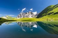 Er hangt een stille magie over de Eissee in het Oytal - een plek waar de tijd stilstaat. Het kristalheldere water rust als een spiegel midden in de Allgäuer Alpen en weerspiegelt majestueus de ruige rotsen van de Großer Wilden, die 2.379 meter hoog de diepblauwe hemel in steken. De groepen Hochvogel en Rosszahn omlijsten het landschap als een natuurlijk schilderij dat is gemaakt door duizenden jaren geologische kracht.