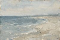 Zachte vlakken en vloeiende overgangen creëren een verstilde ruimte waarin licht en beweging elkaar raken. De gelaagde textuur en zichtbare penseelstreken geven het werk een tastbare, bijna meditatieve kwaliteit.