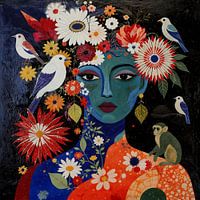 Het schilderij Where nature and soul merge is een intieme verkenning van de complexe relatie tussen mens en natuur, waarin ik emotie en symboliek verweef om een verhaal te vertellen dat woorden te boven gaat. Het meisje in het midden lijkt in harmonie met de vogel en de aap, maar haar blik draagt een zweem van melancholie in zich, een…
