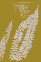 Koop dit abstracte kunstwerk Wabi-Sabi Botanisch: Gedrukte varens op geel. van Dina Dankers op canvas, aluminium dibond, (ingelijste) fotoprint, behang en ArtFrame, op maat geprint in Fine-Art kwaliteit.