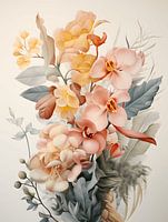 Elke penseelstreek en elk detail in deze illustratie van botanische pracht is doordrenkt met de essentie van Wabi Sabi. De levendige flora, weergegeven in hun meest natuurlijke staat, belichamen de schoonheid van vergankelijkheid en de rust van het onvolmaakte.