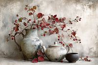 Wabi Sabi stilleven met kruiken en rode bessen -  rustgevend kunstwerk van Joriali fotografie en schilderijen