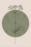 Lijnkunst bloem in zwart op saliegroen en lichtbeige achtergrond. Bloemen semi abstracte minimalistische kunst met een beetje retro vibes. Perfect voor een woonkamer, slaapkamer, wachtkamer, werkkamer, tuin of hal. Bohemian, Zen, Scandinavisch, Basic, New Rural, Romantic woonstijl.
