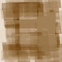 Modern abstract mixed media schilderij. Collage van texturen en penseelstreken in neutrale beigebruine retro kleuren.