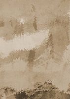 Modern abstract mixed media schilderij. Collage van texturen en penseelstreken in neutrale beigebruine retro kleuren.