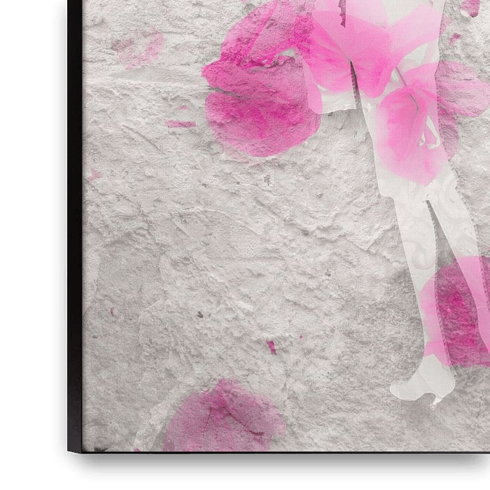 Wachten op de bus, foto gemaakt in een mooi straatje in Italie, vervolgens een andere foto met bloemen er aan toe gevoegd. zodat het een sfeerplaat wordt. Mooie wanddecoratie.