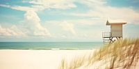 Een ongerept strand, met als middelpunt een houten strandwachttoren.