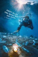 Een diepzeeduiker vindt een glanzende parel op de zeebodem te midden van plastic flessen.