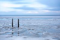 Wad - IJsschotsen op de Waddenzee met mooie blauwe pasteltinten