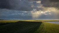 De zeedijk van de Waddenzee bij Oosterbierrum. De dreigende lucht en aankomende buien zorgen voor een prachtig licht schouwspel.