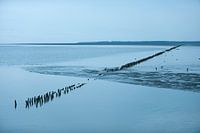 Kalm landschap met palen in zee