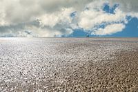 wereld erfgoed de Waddenzee gezien op deze foto met laag water met aan de horizon het waddenzee onderzoeksgebouwtje.