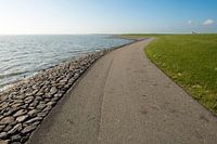 Uitgestrekte Waddenzee dijk met fietspad op het eiland Terschelling