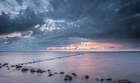 Zonsondergang met dreigende lucht boven de waddenzee nabij Lauwersoog