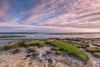 'Waddenzee' is gefotografeerd aan de Waddenzee nabij Wierum (Friesland, Nederland). Een schitterend stuk natuur. Deze morgen viel de zonsopkomst samen met laag water. Door het droogvallen van het wad, werden de jonge planten zichtbaar.