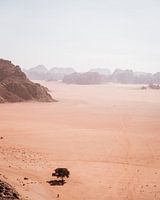 De woestijn in Jordanië, Wadi Rum heeft een prachtige roze gloed over het zand en de bergen in de achtergrond. Dit uitzichtpunt was perfect om de woestijn te bekijken.