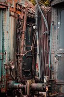 Koppelmechanisme tussen 2 treinwagons op het niet meer in gebruik zijnde station van Hombourg (België)