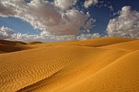 Wolken boven Wahibi Sands woestijn in Oman. De ongerepte zandduinen versterken het gevoel van verlatenheid in deze grote zandvlakte