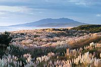 Kust en vegetatie bij Kawhia Hot Water Beach, Waikato, Noordereiland, Nieuw-Zeeland, Oceanië