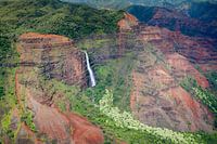 Luchtfoto van Waipoo Falls in Waimea Canyon op Kauai, Hawaii, VS.