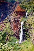 Luchtfoto van Waipoo Falls in Waimea Canyon op Kauai, Hawaii, USA.