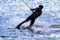 een wakeboarder in de achtergrondverlichting